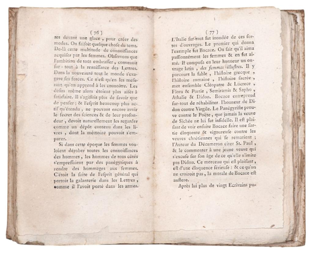 Opera di fascino e interesse storico-letterario, testimonianza della riflessione illuminista sul ruolo delle donne nella società e nella cultura europea.