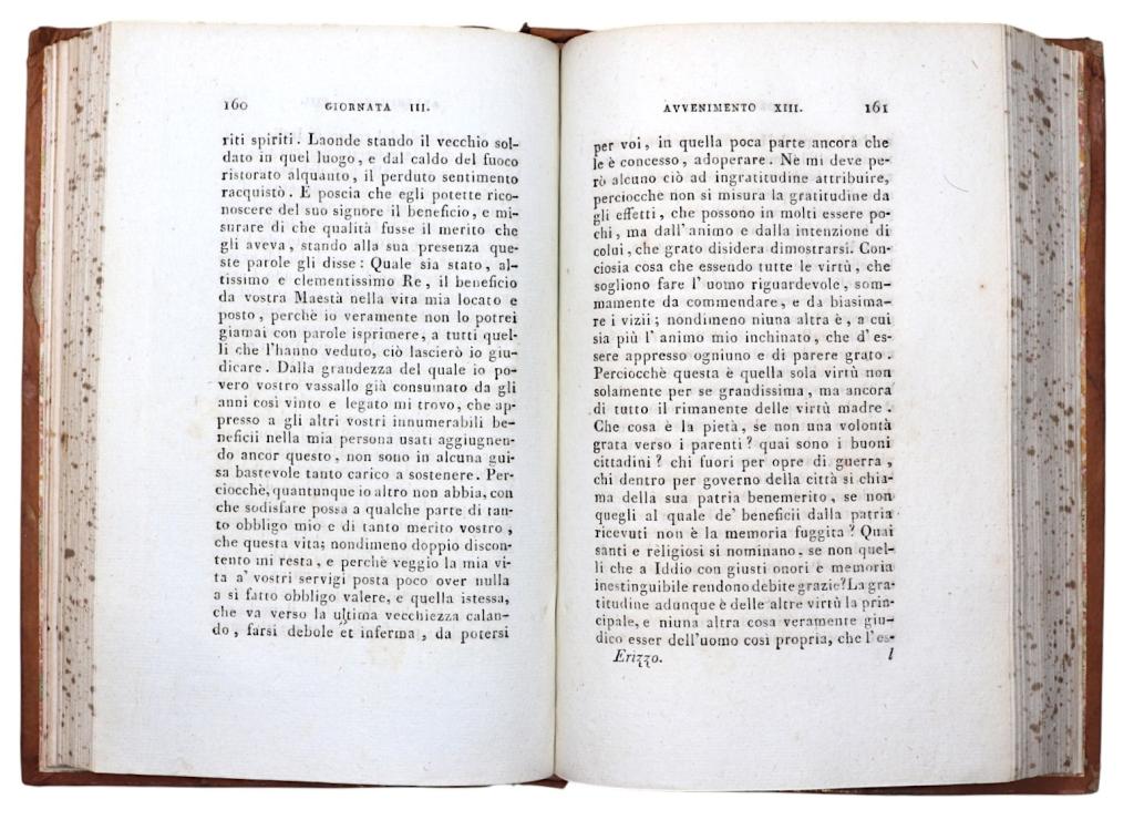 L’edizione livornese del 1794 è rara e ricercata, sia per la falsa indicazione di stampa londinese sia per la presenza della novella su Attila, non comune ad altre ristampe.