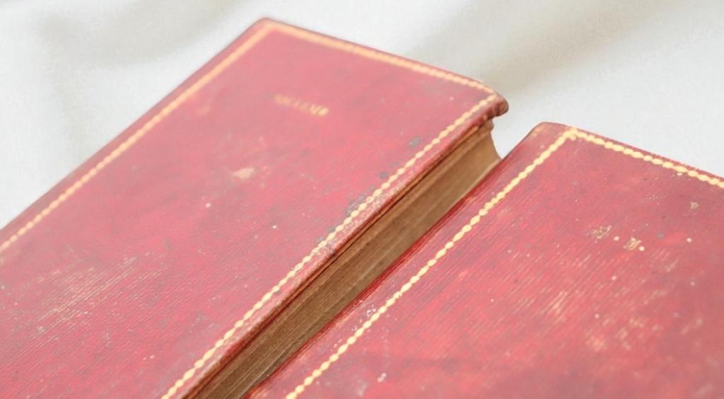 Rilegatura: Piena pelle rossa con dorature sul dorso e sui piatti. Taglio oro.