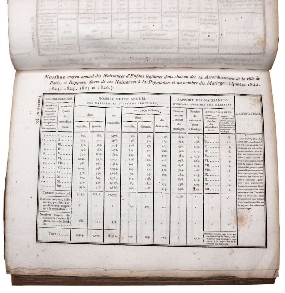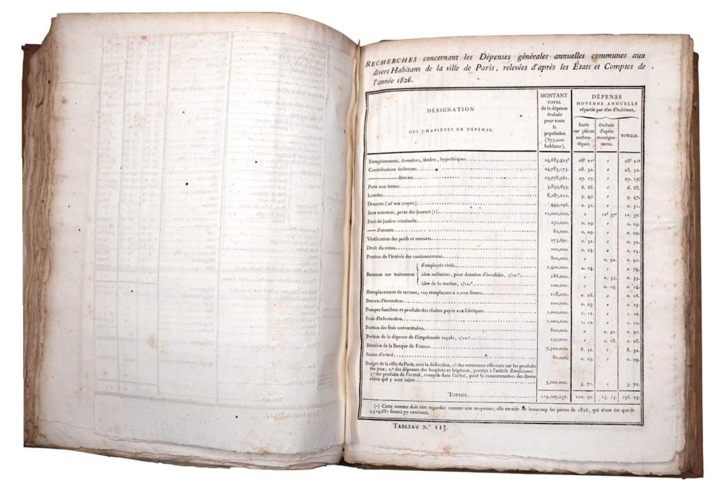 Quest’opera segna una tappa fondamentale nella nascita della statistica amministrativa moderna in Francia, anticipando i grandi lavori del Secondo Impero e influenzando direttamente gli studi di urbanistica e igiene pubblica. Esemplare completo delle 145 tavole.