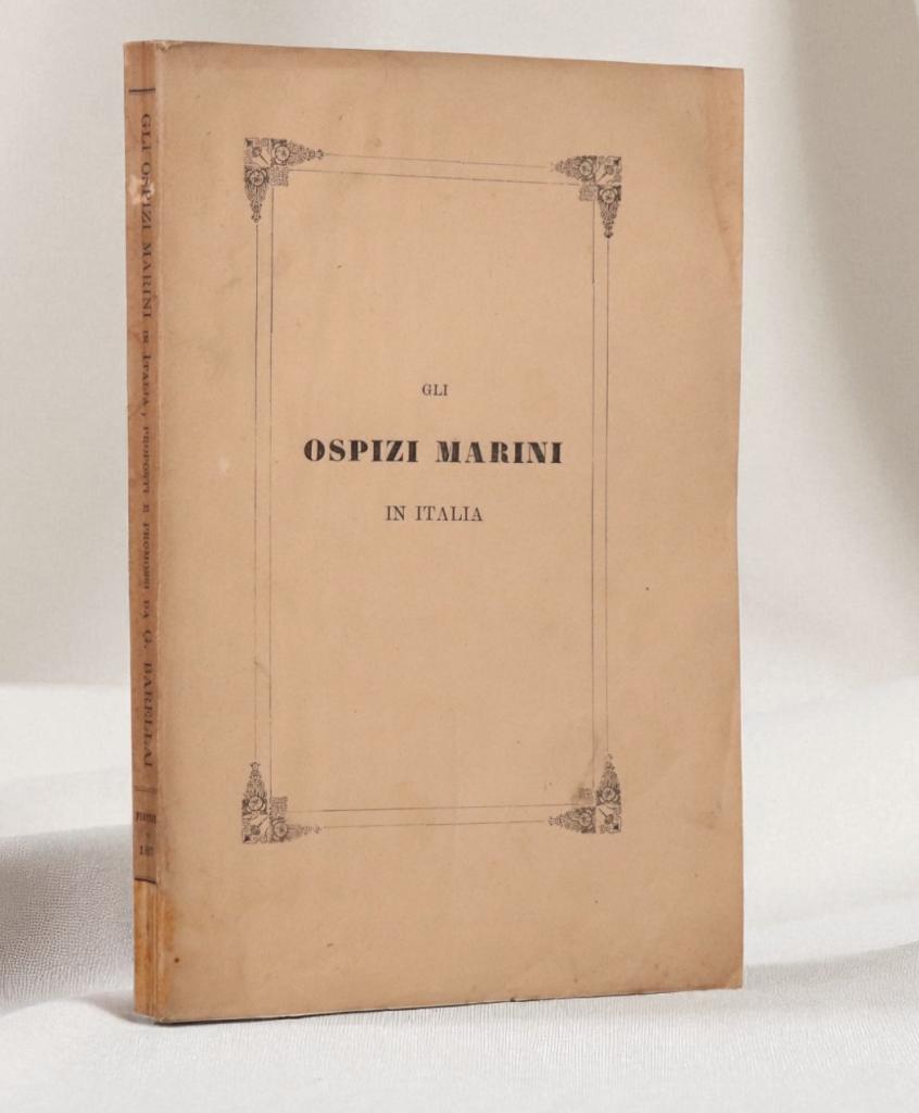 Libro Gli ospizi marini d’Italia di Giuseppe Barellai, Firenze 1867, prima edizione con tavole. Titolo: Gli ospizi marini d’Italia Prima edizione del celebre scritto di Giuseppe Barellai (1813-1884), medico e filantropo fiorentino, pioniere della medicina sociale in Italia. L’opera illustra e promuove la creazione degli ospizi marini, istituti destinati alla cura e alla convalescenza dei bambini affetti da malattie croniche e debilitanti, tramite la permanenza in località costiere salubri. Il volume, stampato a Firenze presso M. Cellini nel 1867, si distingue per la chiarezza espositiva e per l’alto valore storico, rappresentando una delle prime riflessioni sistematiche in Italia sull’importanza dell’ambiente e del clima nella prevenzione e cura delle malattie pediatriche. Le due tavole fuori testo documentano in modo visivo le strutture e i progetti architettonici degli ospizi. Opera di grande rilevanza per la storia della medicina e della sanità pubblica italiana, testimonianza del fervore riformatore post-unitario e dell’impegno civile di Barellai, che fu anche tra i promotori della Croce Rossa Italiana. Presente una tavola in più dell'Ospizio Marino di Viareggio (anno 1867) e la dedica interamente autografa al Sindaco di Firenze datata 30 aprile 1868.