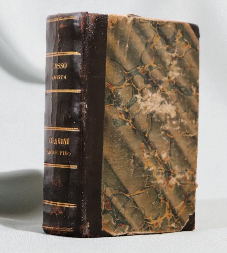 Libro Aminta di Tasso e Amor fuggitivo con Pastor fido di Guarini, Venezia 1812, con ritratti Titolo: L’Aminta ; e L’amor fuggitivo di Torquato Tasso. Il pastor fido del cav. Batista Guarini Edizione veneziana del 1812 che raccoglie in un unico volume due tra i maggiori capolavori del teatro pastorale italiano: l’Aminta e l’Amor fuggitivo di Torquato Tasso (1544-1595), e il Pastor fido di Battista Guarini (1538-1612). Il volume, di piccolo formato, presenta VII pagine introduttive e 455 di testo, corredato dai ritratti incisi dei due autori. La scelta editoriale di Vitarelli fu quella di proporre un testo “formato sopra i migliori esemplari” allora disponibili, in linea con la rinnovata attenzione filologica del primo Ottocento. L’Aminta e il Pastor fido sono testi fondamentali della tradizione pastorale europea: opere che, nate nel contesto tardo-rinascimentale e barocco, segnarono l’immaginario letterario con la fusione di lirismo, amore idealizzato e raffinata costruzione scenica. Questa edizione ottocentesca testimonia la lunga fortuna dei due autori, la cui influenza arrivò fino al Romanticismo.