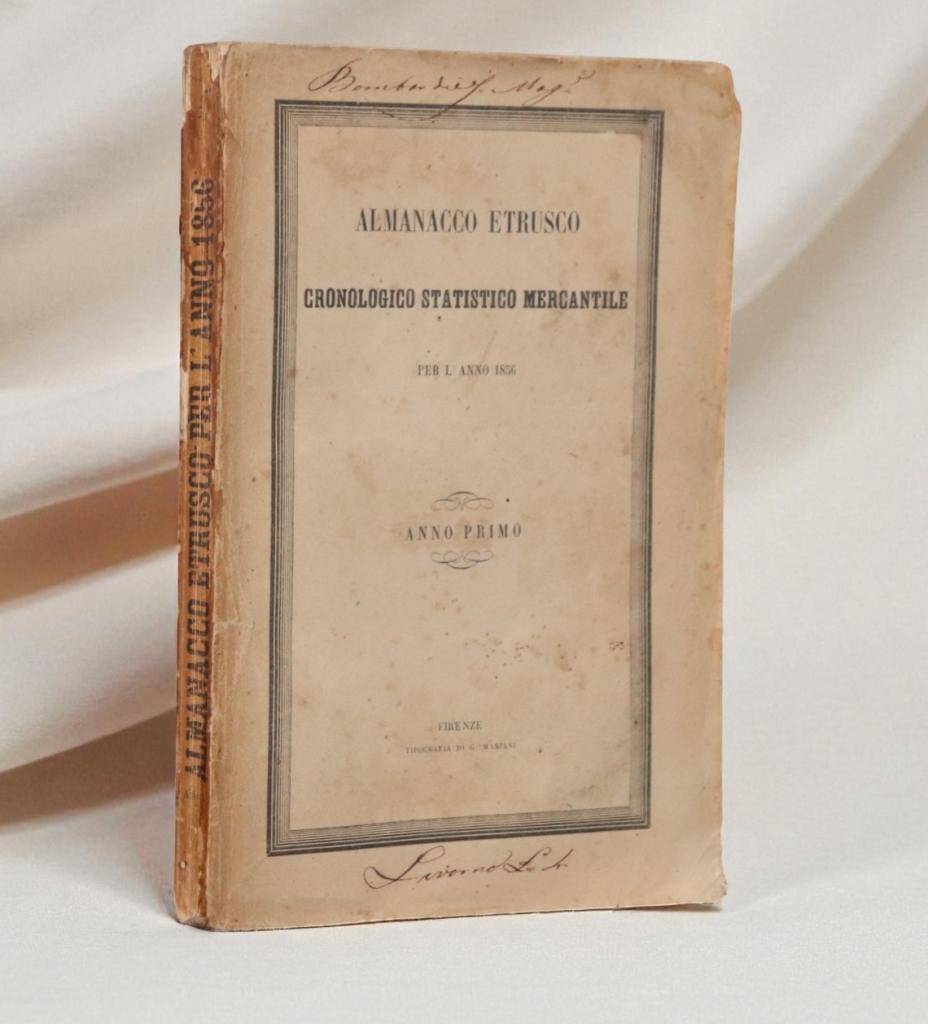 Libro Almanacco etrusco cronologico, statistico, mercantile, Firenze 1856, prima annata Titolo: Almanacco etrusco: cronologico, statistico, mercantile Prima annata (1856) dell’Almanacco etrusco, pubblicato a Firenze da G. Mariani, pensato come repertorio di informazioni cronologiche, statistiche e mercantili destinate a professionisti, commercianti e studiosi. Il volume, si inserisce nel genere degli almanacchi pratici ottocenteschi, che combinavano dati di utilità quotidiana — statistiche demografiche ed economiche, calendari civili e religiosi, notizie storiche e commerciali — con tabelle e informazioni aggiornate per il mondo degli affari. L’opera ebbe cadenza annuale, testimoniando il crescente interesse dell’Italia preunitaria per strumenti editoriali che unissero cultura generale e conoscenze tecniche. La prima annata è oggi di rara reperibilità e rappresenta una significativa fonte per la storia della statistica e dell’editoria fiorentina del XIX secolo.