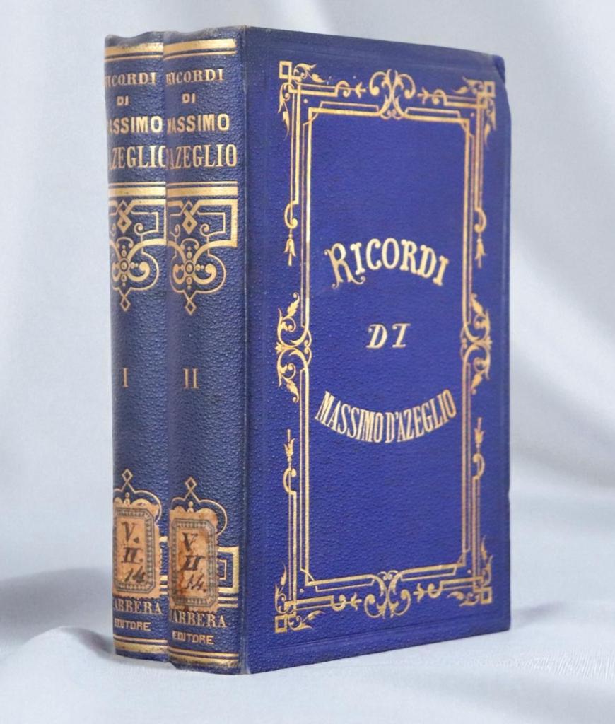Libro I miei ricordi Massimo d’Azeglio, Firenze 1867 Edizione Barbèra in 2 volumi con ritratto autore Titolo: I miei ricordi Edizione fiorentina del 1867 dei celebri Ricordi di Massimo d’Azeglio (1798-1866), uomo politico, scrittore e pittore, figura di primo piano del Risorgimento italiano. Pubblicata postuma da G. Barbèra, l’opera è distribuita in due volumi in formato ottavo piccolo (18 cm) ed è corredata, nel primo tomo, da un ritratto inciso dell’autore. In queste memorie, d’Azeglio ripercorre con lucidità e ironia la propria vita pubblica e privata: dagli esordi come pittore storico alla maturazione politica, fino al suo ruolo nella costruzione dell’Italia unita. Lo stile brillante e sincero, insieme alla schiettezza del giudizio su personaggi e vicende, fanno di quest’opera una delle testimonianze più vive e preziose del pensiero liberale moderato. Stampata da Barbèra, editore di punta del Risorgimento, questa edizione rappresenta un importante documento storico-letterario e conserva il fascino delle memorie personali di uno dei protagonisti del XIX secolo.