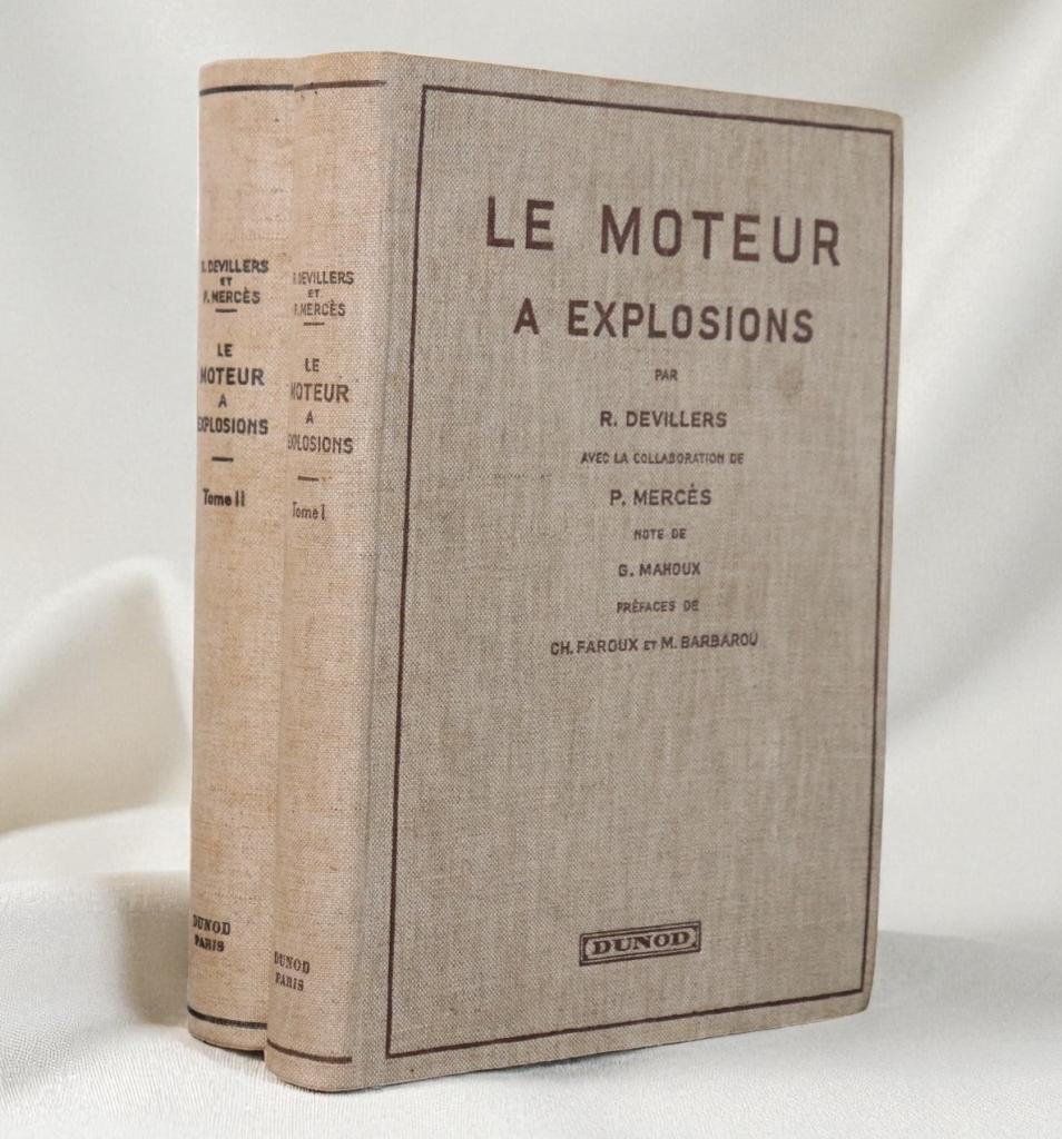 Libro Le Moteur à explosions par René Devillers avec la collaboration de P. Mercés (2 tomi) Autore: René Devillers, ingegnere e docente, specialista in meccanica applicata e motori termici. l trattato, pubblicato da Dunod a Parigi, è considerato uno dei testi più completi della prima metà del Novecento sui motori a scoppio. L’opera è in due volumi, per un totale di 1486 pagine, ed è arricchita da centinaia di figure tecniche, schemi e tabelle di calcolo. Già dalla seconda edizione del 1920 viene indicato come “complètement modifiée”, con l’aggiunta di 394 figure nel testo e 74 abachi realizzati da Raymond Jamin, segno del costante aggiornamento dei contenuti. L’edizione del 1935, la terza, è quella più ampia e sistematica: il primo tomo tratta la miscela gassosa, l’evoluzione e i cicli a quattro tempi, l’influenza dell’altitudine, la sovralimentazione, lo studio cinematico del sistema biella-manovella e le forze d’inerzia; il secondo tomo affronta invece la sezione di passaggio dei gas, il carter, la lubrificazione, il raffreddamento, i motori disassati e rotativi, i motori a due tempi e i regolatori di velocità.