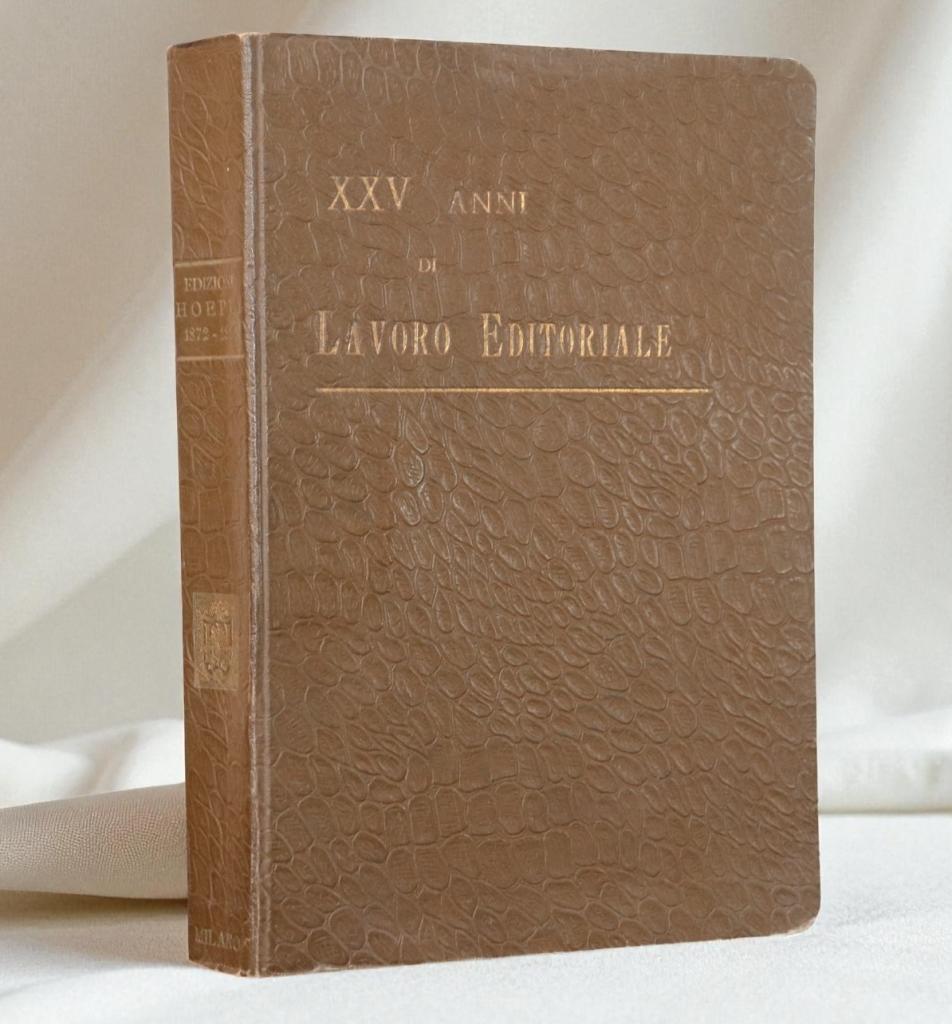 Catalogo completo delle edizioni Hoepli. Elencate in un solo alfabeto per autori e per soggetti, precedute dall’indice cronologico delle singole pubblicazioni dal 1871 al 1907. Editore: Milano, Ulrico Hoepli Anno: 1907 Pagine: LV, 358 pp. Raro catalogo editoriale ufficiale della celebre casa editrice Ulrico Hoepli, pubblicato in occasione dei suoi primi 35 anni di attività. Strumento prezioso per bibliofili, librai antiquari, studiosi e collezionisti, permette di ricostruire l’evoluzione del catalogo Hoepli, con particolare attenzione ai manuali tecnici, scientifici e linguistici che resero celebre la casa milanese in Italia e all’estero.
