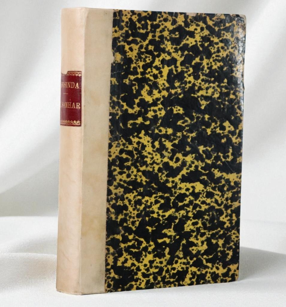 Libro Nel Samhar di Mario Da Fusinda Editore: Pistoia, Casa Tipografico-Litografico-Editrice Sinibuldiana di Giuseppe Flori e C. Anno: 1905 Pagine: 248 pp., con una tavola fuori testo (antiporta). Raro romanzo di Mario Da Fusinda, autore oggi quasi dimenticato ma appartenente al vivace panorama letterario toscano di inizio Novecento, pubblicato presso la storica Tipografia Sinibuldiana di Pistoia, una delle più attive officine culturali dell’epoca. Nel Samhar si inserisce nel gusto narrativo simbolista e avventuroso del primo Novecento, mescolando suggestioni esotiche, riflessioni morali e tensione poetica. Lo stile di Da Fusinda, limpido e meditativo, unisce elementi di narrativa d’avventura e introspezione psicologica, con echi di letteratura coloniale e spiritualista. L’opera è impreziosita da una tavola illustrata, di gusto tipografico elegante, che accompagna l’impianto raffinato del volume. Edizione molto rara, pubblicata in un piccolo centro tipografico toscano, oggi di difficile reperibilità sul mercato. Presente il timbro "Ex Libris Mario Foresi" e la dedica sul frontespizio omaggio dell'autore.