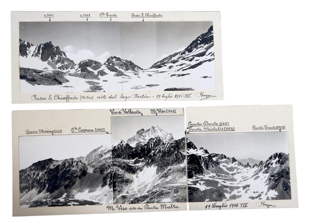 Album fotografico d’epoca (1936-1937) composto da 52 fotografie originali di vario formato, di straordinaria qualità e fascino documentario. Nella parte finale dell’album si trovano fotografie di grande formato dedicate al celebre villaggio di neve di Limone Piemonte, costruito dagli Alpini della Divisione Cuneese in occasione della gara di sci delle truppe alpine del 1936. Album di grandissimo pregio e interesse collezionistico, perfettamente conservato, autentico documento visivo delle Alpi e delle truppe alpine tra le due guerre.