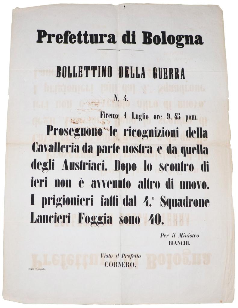 Bollettino della guerra n. 4 – Prefettura di Bologna, Firenze, 1 luglio 1859