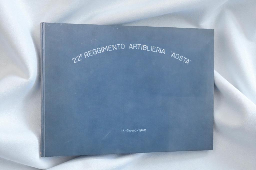 Prestigioso album fotografico d’epoca, composto da 20 fotografie originali che documentano con grande intensità la cerimonia militare del 25 luglio 1949 dedicata al 22° Reggimento Artiglieria “Aosta”.
