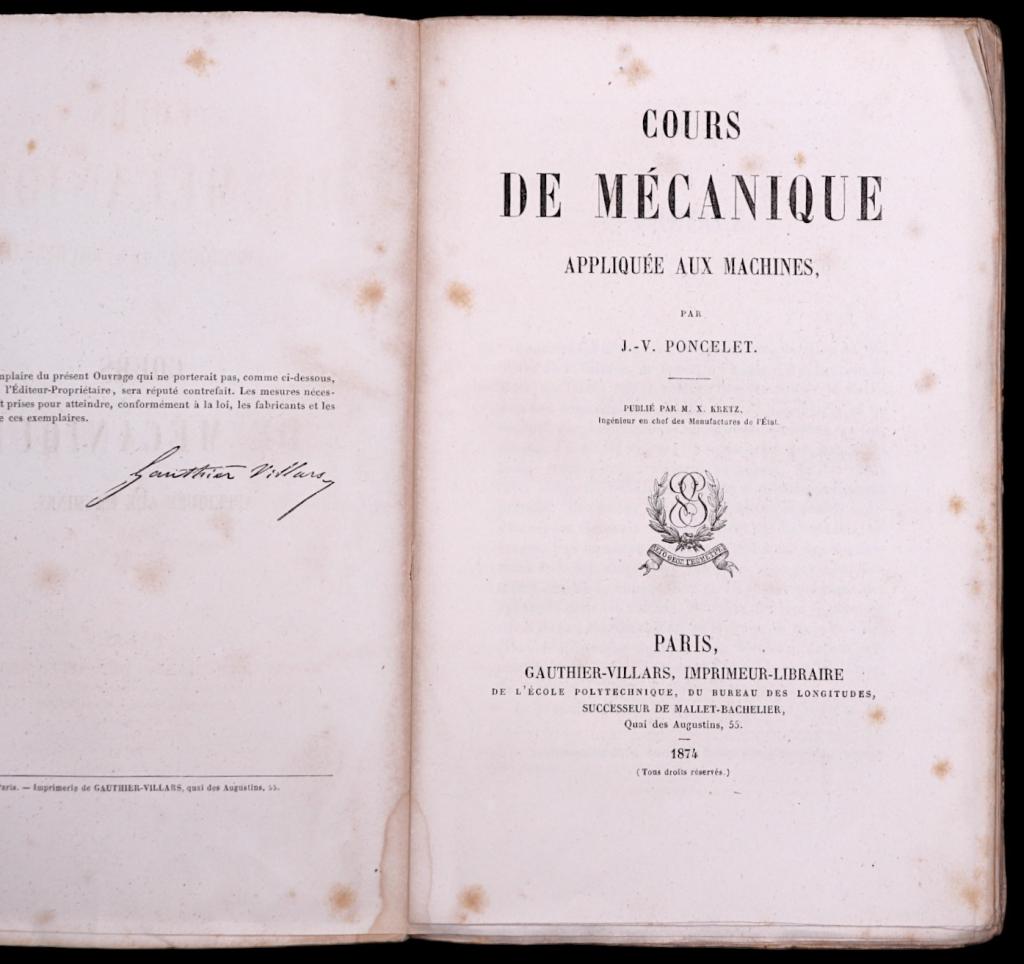 Cours de mécanique appliquée aux machines, edizione francese del 1874